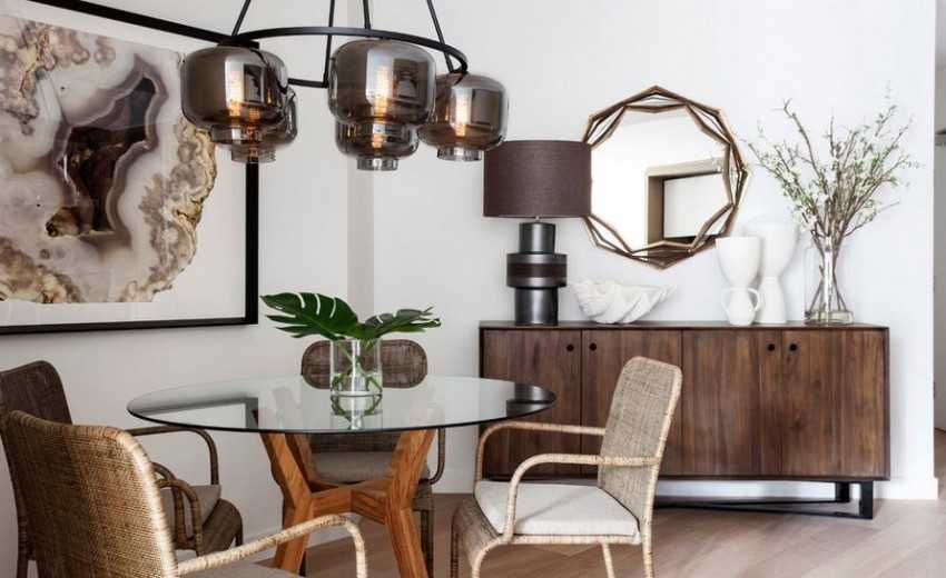 Для маленьких помещений важную роль играет и компактность. Он должен гармонично вписываться в интерьер и не нарушать общую концепцию комнаты. Если у вас большая семья или часто бывают гости, то лучше приобрести раздвижной стеклянный стол.
