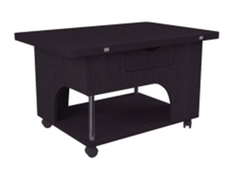 Журнальный столик – рабочее место. В этом случае совершенно не обязательно, чтобы столешница меняла форму, увеличиваясь. Чаще всего журнальный столик раскладывается в подобие парты – поднимается только столешница топ, открывая ящик, использующийся для хранения офисной мелочи – бумаги, скрепок, блокнотов и т.д