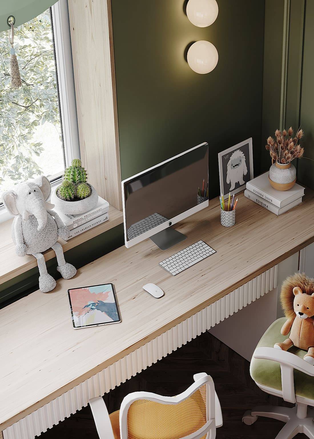 Как расположить и оформить письменный стол в детской комнате: фотопримеры в интерьере