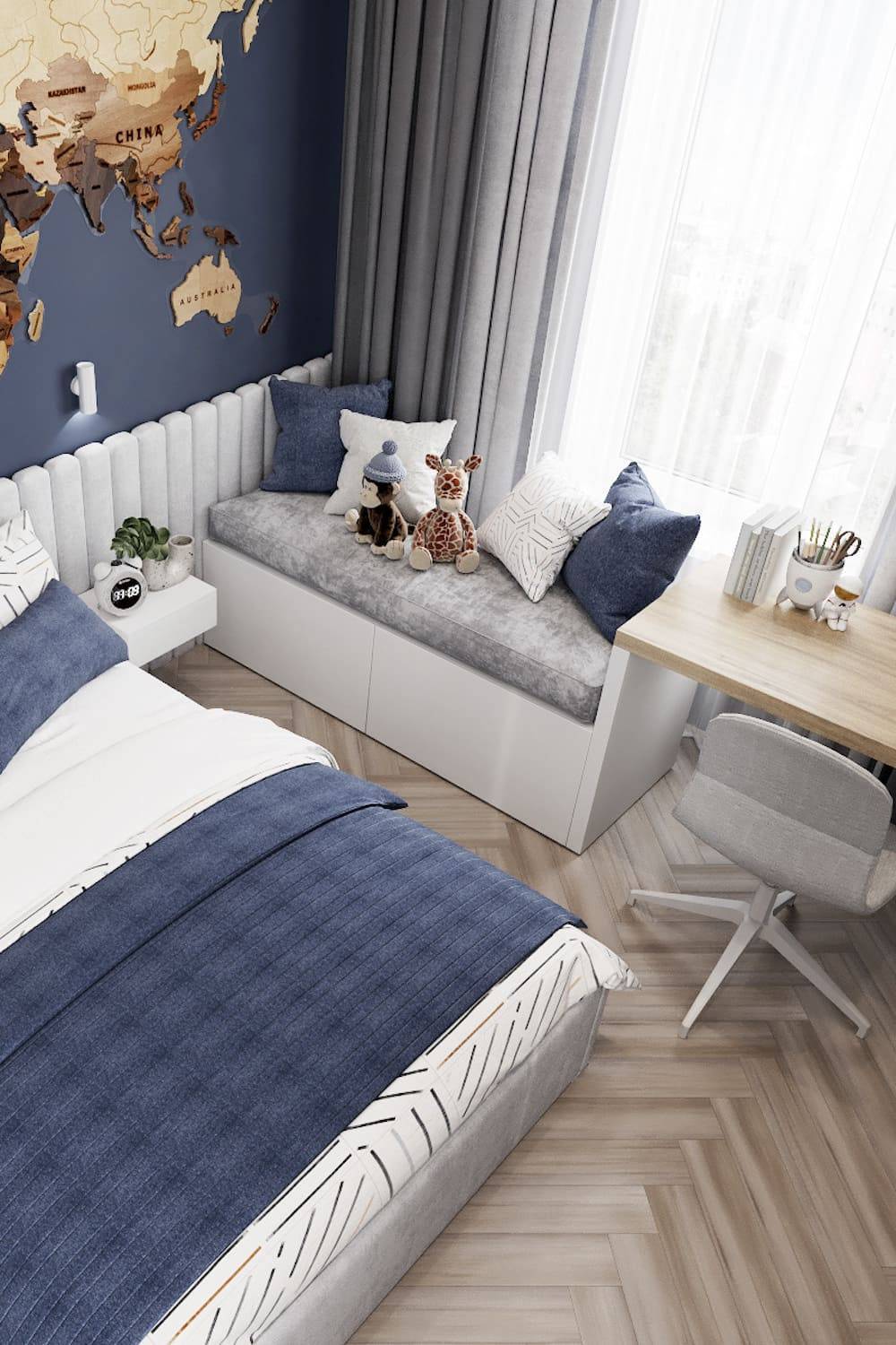 Детская должна иметь большую игровую зону, особенно если дети дошкольного возраста. Для мальчика обустраивается спортивная зона, к примеру, шведская стенка. Девочке достаточно установить столик, за которым она будет проводить чаепития с куклами. В комнате подростков разного пола можно организовать общую зону отдыха, где они также смогут проводить время с друзьями. В ней располагается диван или пуфики, игровой стол, телевизор.