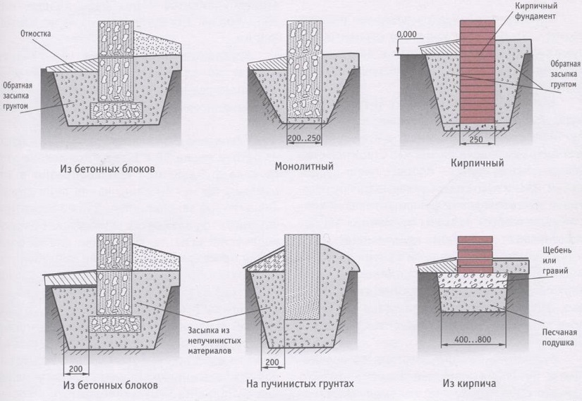 Различают два типа кирпичного столбчатого фундамента по глубине залегания: