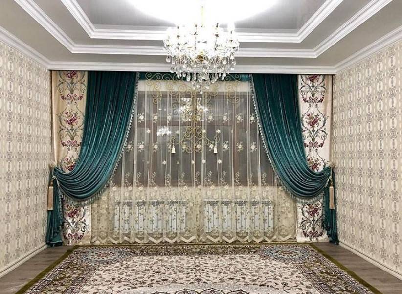 Используй обильный золотой и серебряный декор, тяжелые ламбрекены, объемные кисти, подхваты. Смени тюль из органзы на натуральный шелк с вышивкой. А для самых шикарных классических интерьеров шторы шьются вручную.