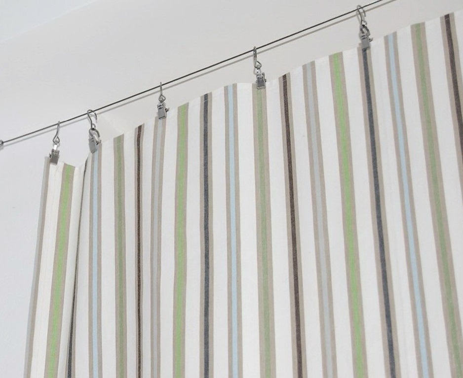 Чтобы понять, как закрепить шторы на балконе без карниза, используются различные нестандартные методы. К одним из таких следует отнести леску или тонкую проволоку.