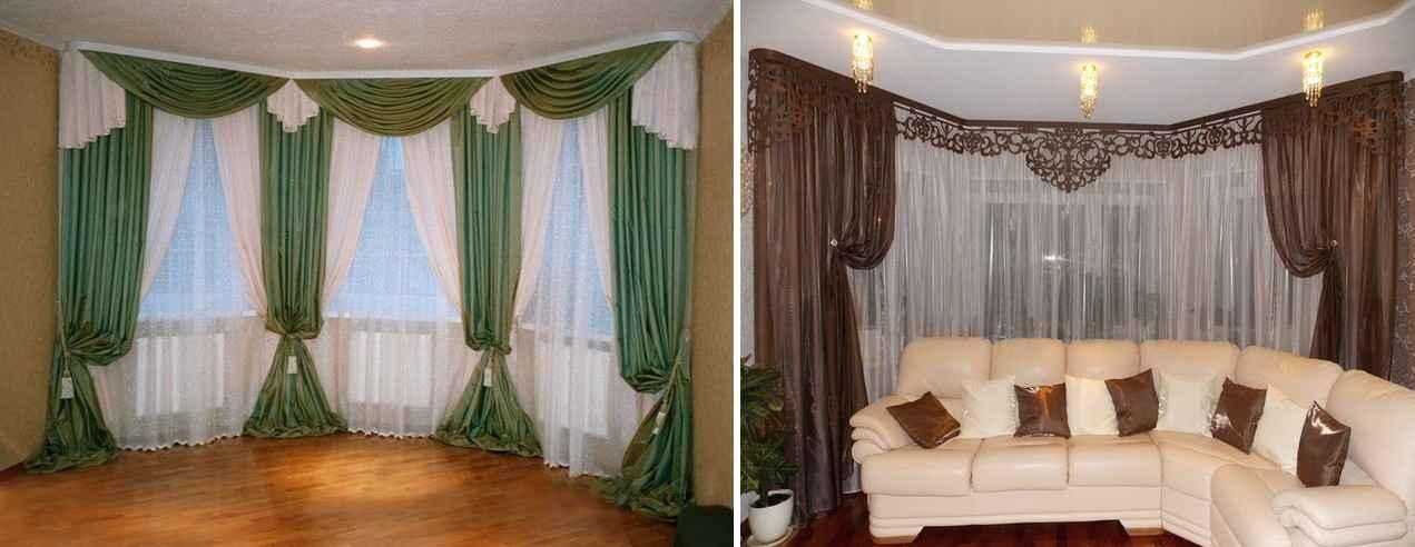 Длина штор зависит от того, в каком из помещений расположен эркер.