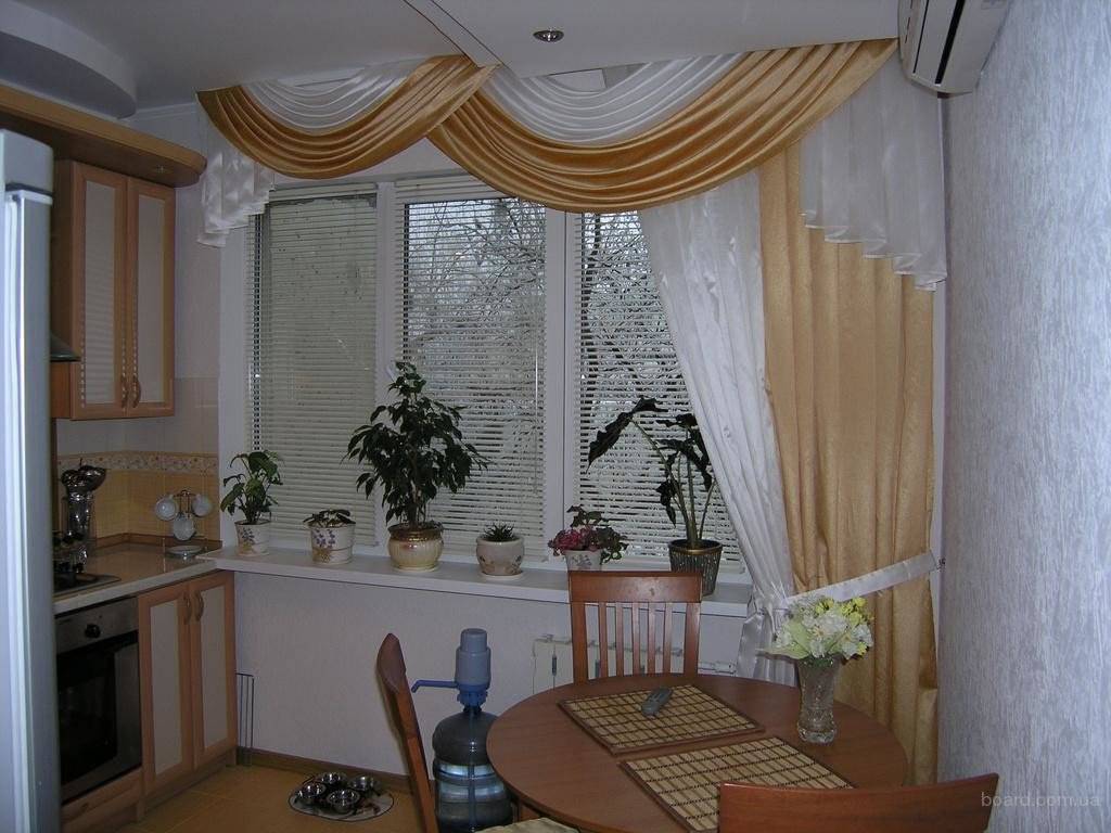 И еще, что немаловажно: общий дизайн штор на кухонное окно с дверью на балкон должно быть подобрано в соответствии с типом интерьера самой кухни и балконной драпировкой.