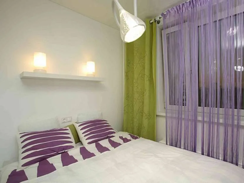 На фотографиях ниже смотрите примеры декорирования комнаты с помощью штор нитей.