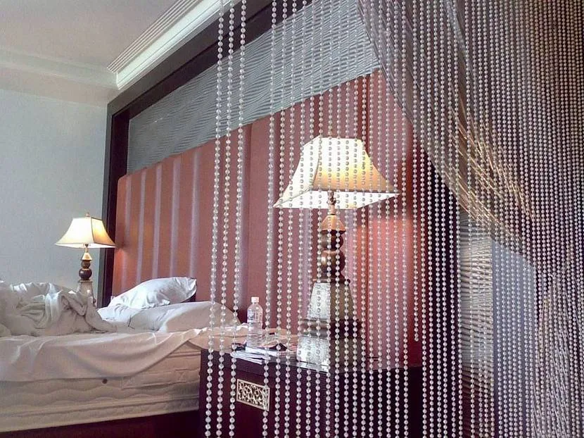 Если повесить конструкцию на окно, то при колебании элементы издают постукивающий звук. Элегантные модели из бамбука отлично впишутся в восточный стиль, а варианты из тонкой проволоки эффектны в эклектике. Дизайнерские шторы с мерцающими камнями станут яркой деталью в пространстве.