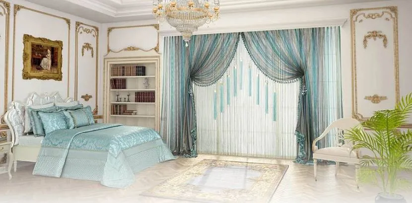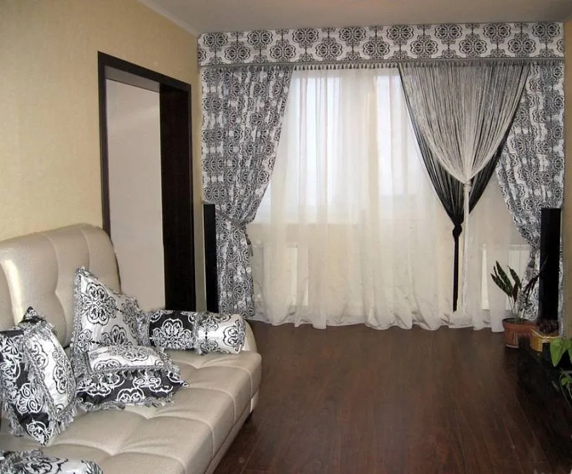 Нитяные шторы прекрасно комбинируются с любыми текстильными моделями.