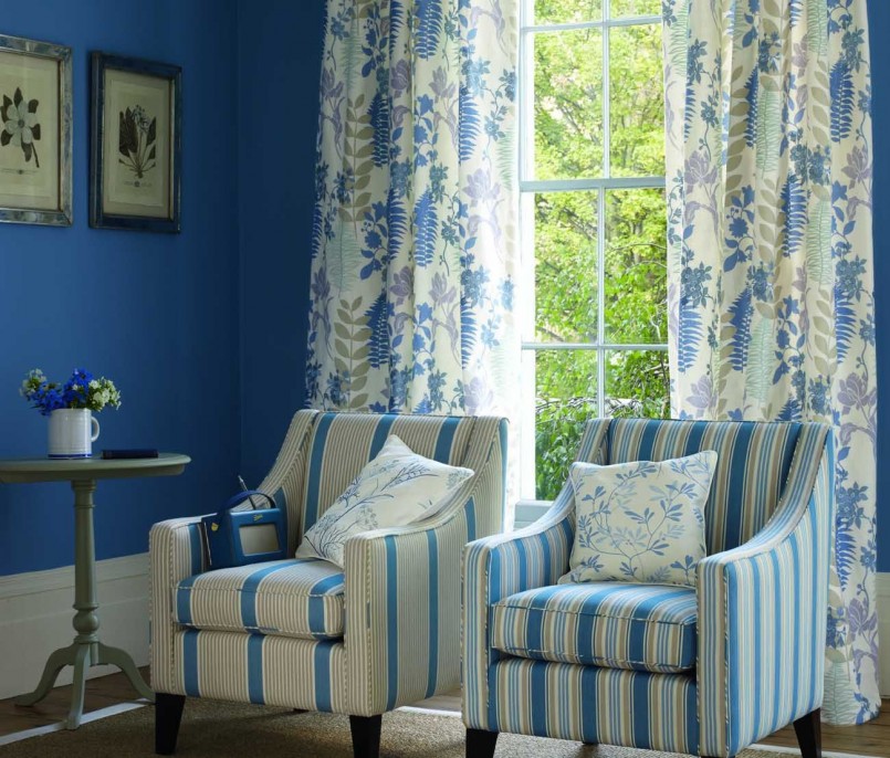 Холодный голубой колорит лучше подходит для светлых комнат с окнами на южную сторону. Примечательно, что днем в таких, наполненных солнечным светом помещениях тон штор смотрится на пару нот ярче и насыщенней.