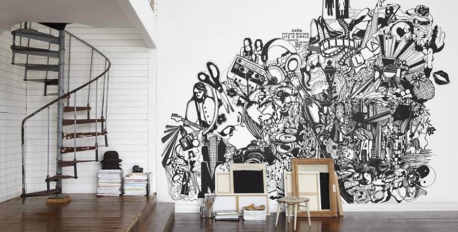 - Обои Mr Perswall — это сочетание традиционных скандинавских мотивов с какими-то совершенно безумными рисунками, абстракцией и очень насыщенными оттенками.