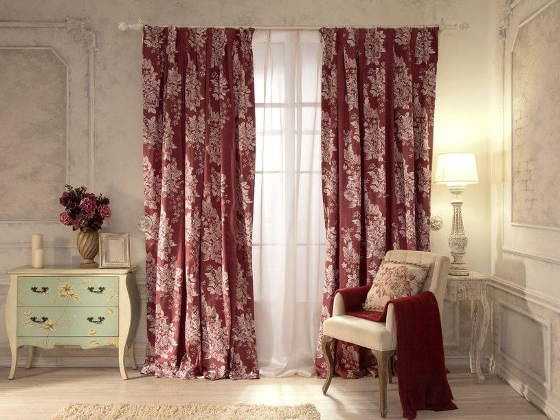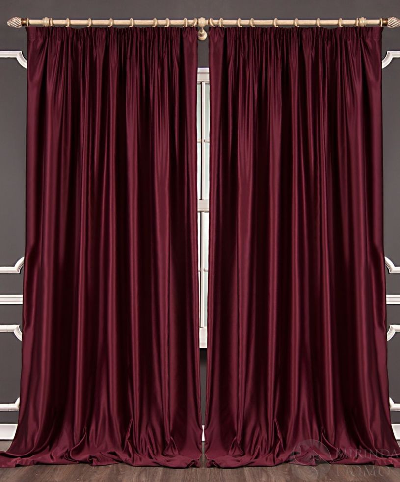 Красочные занавески цвета марсала, акцентирующие внимание на роскошности дизайна, не будут выглядеть вызывающе при соблюдении некоторых правил