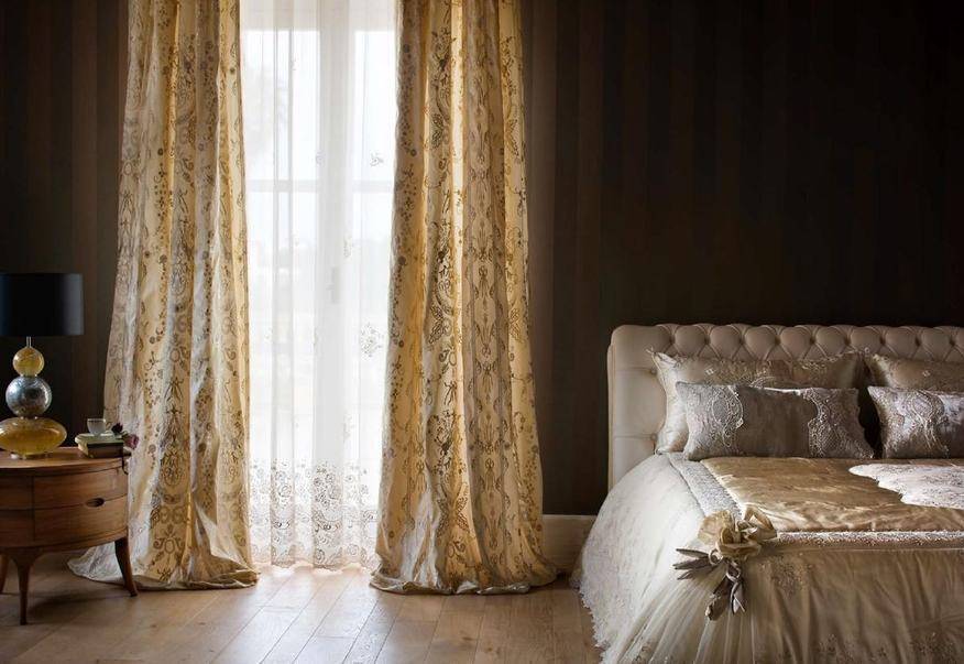 - Позолоченные элементы убранства, в том числе в оформлении самих штор.