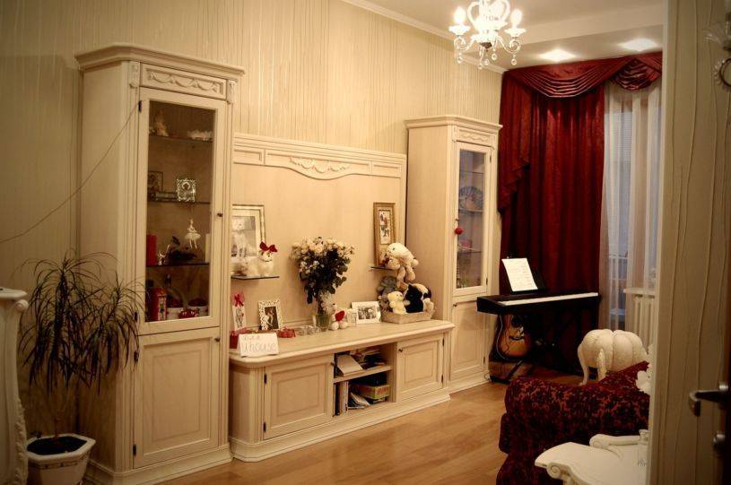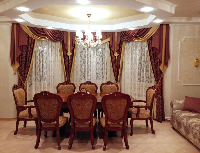 Для классического интерьера просто необходимы ламбрекены. Гардины не должны быть слишком короткими. Длина между ними и полом традиционно – не менее пяти сантиметров.