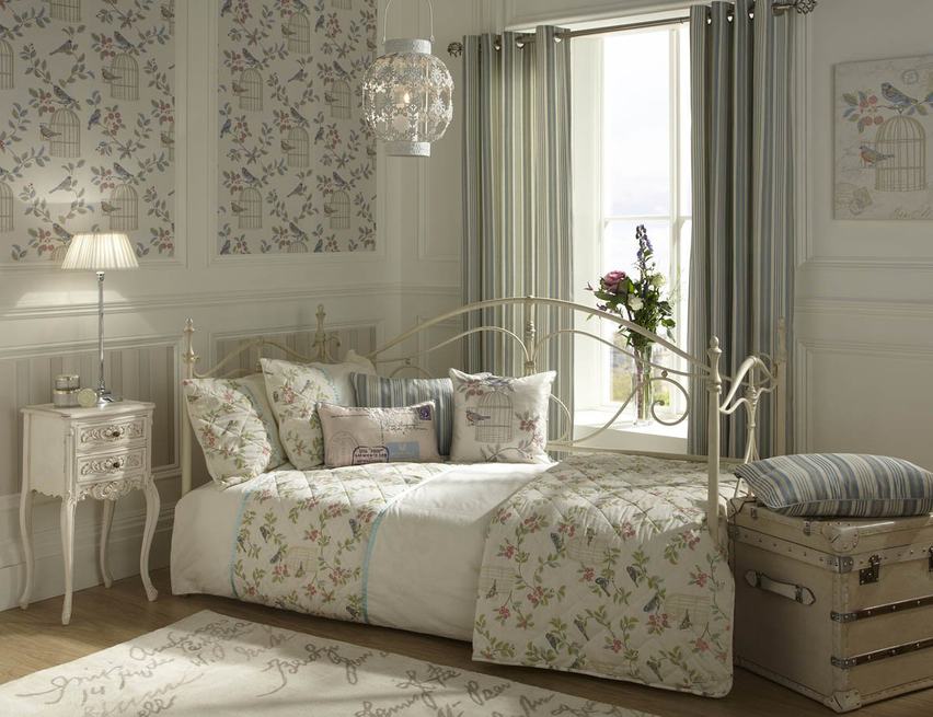 Если ваша спальня декорирована в стиле прованс и наполнена нежными цветочными принтами, сделайте ее максимально светлой. Отдайте предпочтение шторам из хлопка, льна или ситца. Лучше, если материал будет иметь однотонную окраску, допустим мелкий цветочек, а тюль – легко пропускать свет.