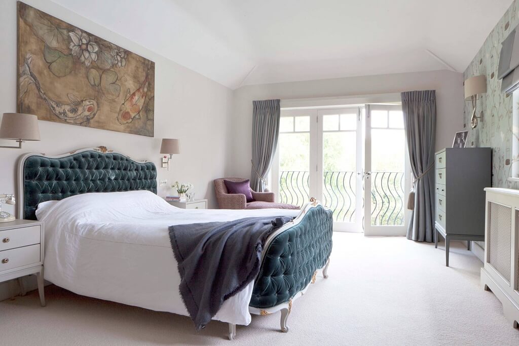 Современная светлая спальня это не только привычные белые или бежевые тона, хотя и они отличаются большим разнообразием. Здесь присутствуют прелестные цвета: