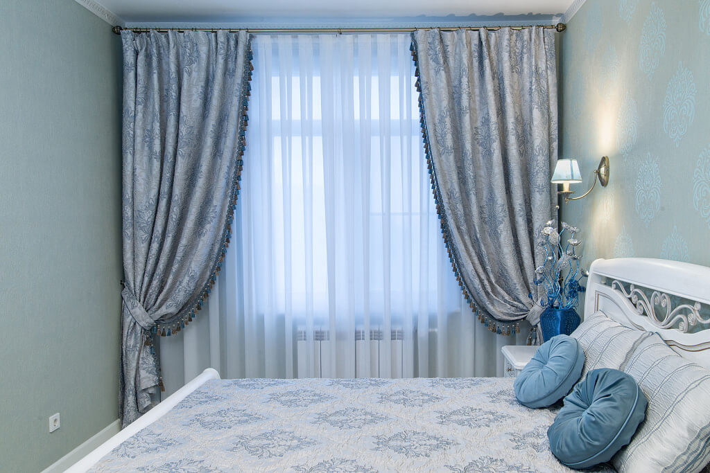 При выборе штор для спальни важно отталкиваться от интерьера и цвета стен.