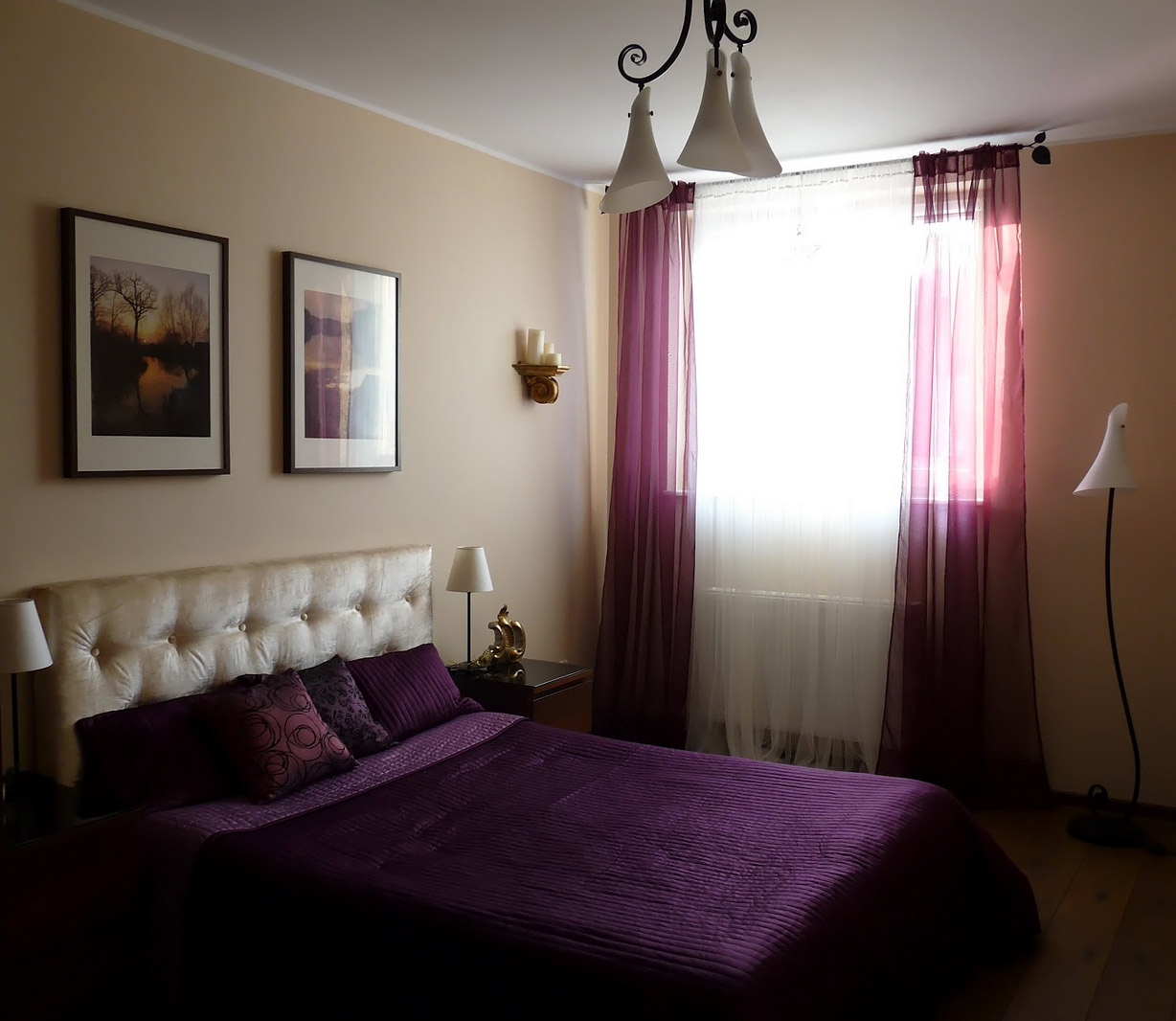 Он обладает, в некоторой степени, загадкой. Как правило, такому цвету предпочтение отдают творческие натуры. Он очень красивый и достаточно необычный, благодаря этому совершенно любой интерьер можно очень хорошо преобразить. Но, к выбору комплекта штор для спальни в фиолетовом оттенке, нужно отнестись очень внимательно и ответственно. Все дело в том, что он может оказывать разное влияние на людей. На кого-то чувственность, на кого-то тревогу.