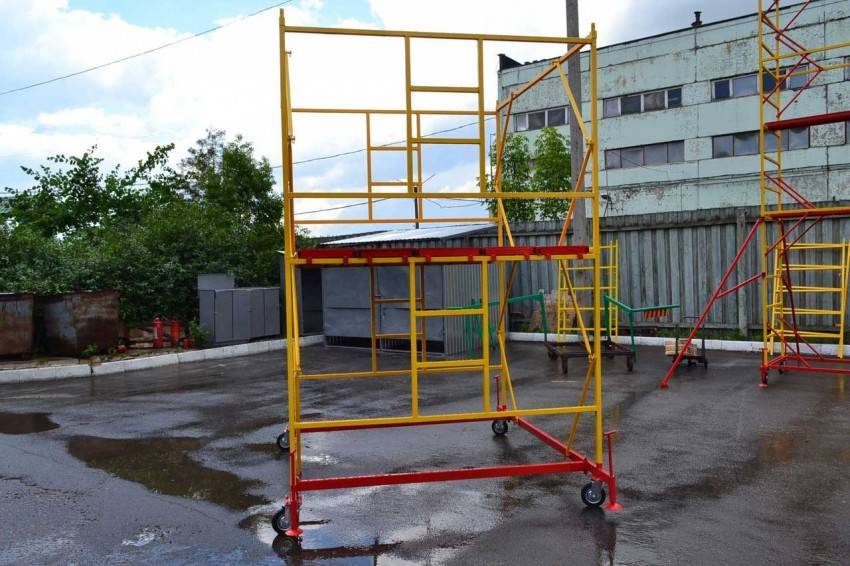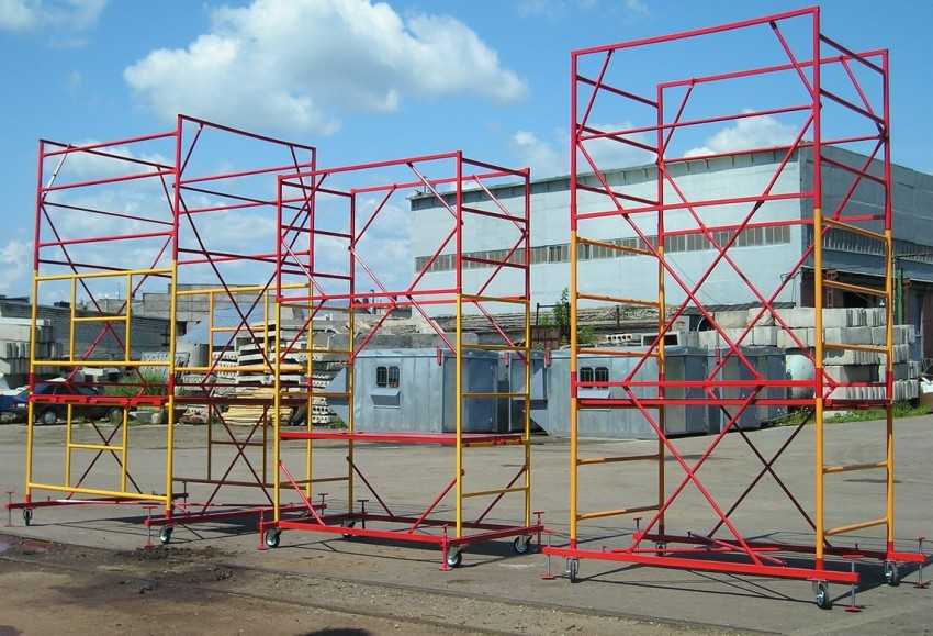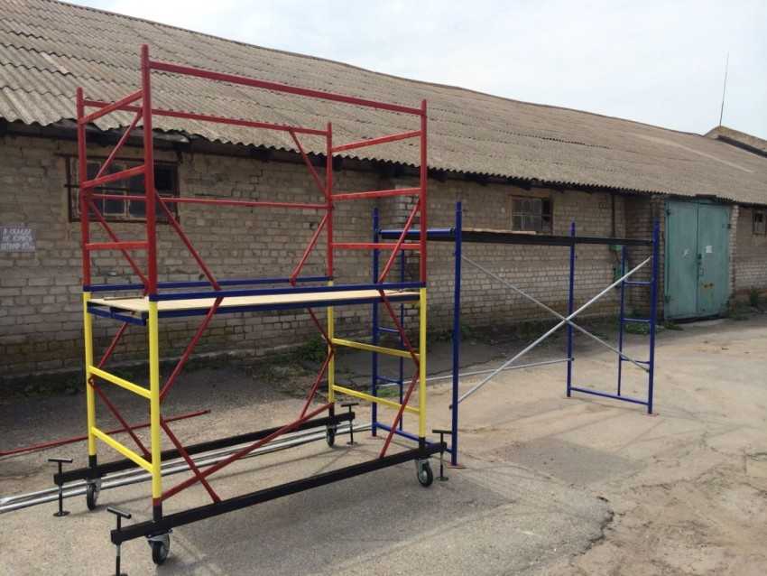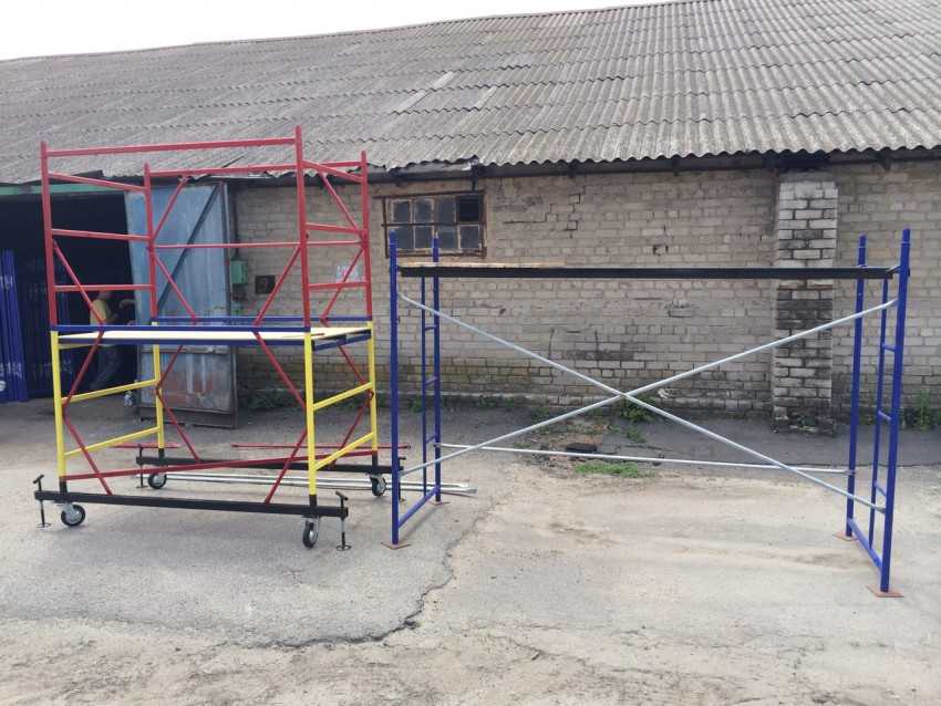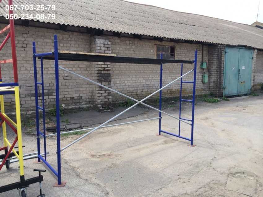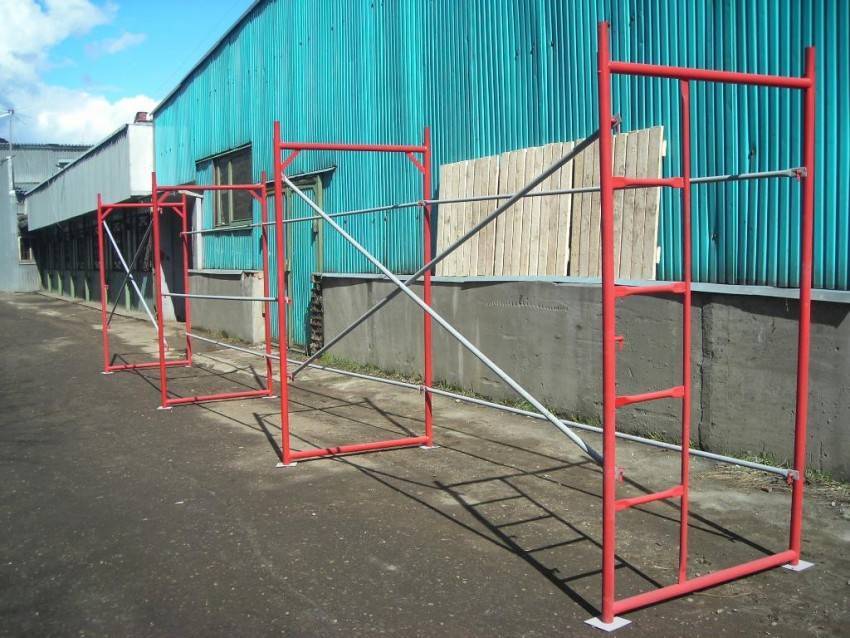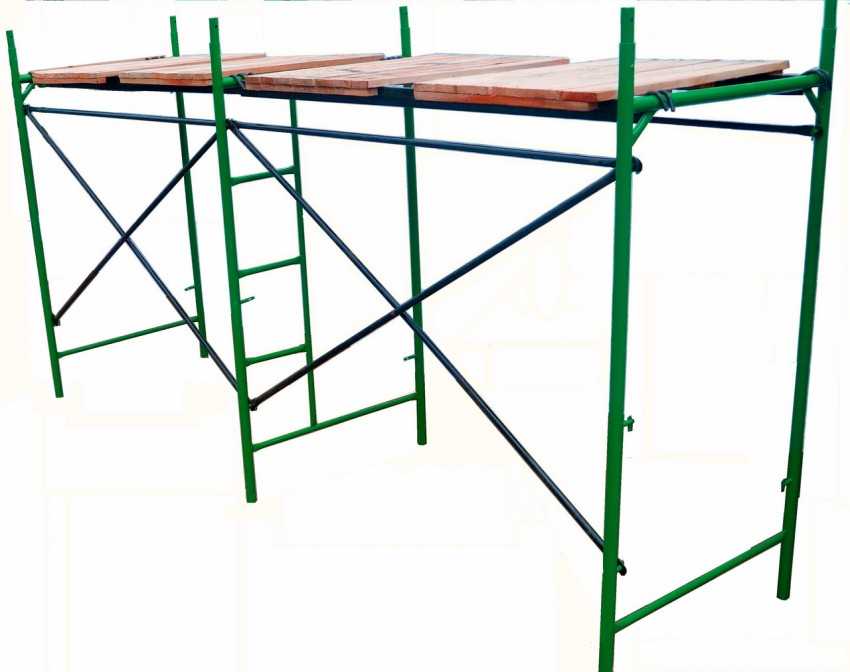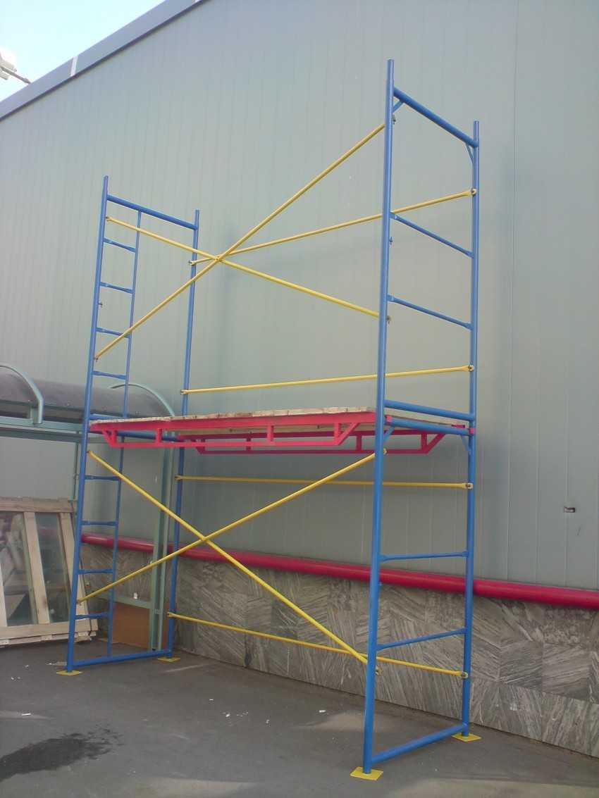 Рамные . Основная деталь подобных конструкций – это жесткая рама. Чаще всего такое сооружение используется в условиях покрасочных и штукатурных работ. Рама в рассматриваемых конструкциях связывается с горизонтальными стойками и диагональными связующими компонентами.