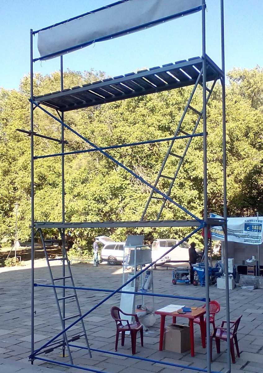 Плюс – небольшой вес при способности выдерживать значительную нагрузку; простота сборки (хотя и относительная). Минус – высокая стоимость; повышенное давление на почву. Для обеспечения устойчивости необходимо принять ряд дополнительных мер. В частном секторе такие леса, как правило, не используются. Основная причина – сложность изготовления. Здесь нужны точные расчеты и сварочный аппарат.