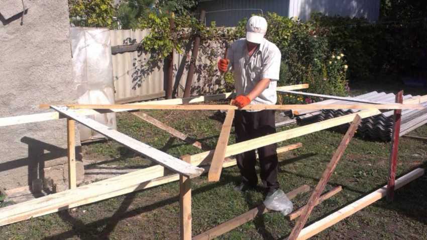 - С обеих сторон каждого «треугольника» прибивают укосины из досок. Их количество зависит от ширины настила.