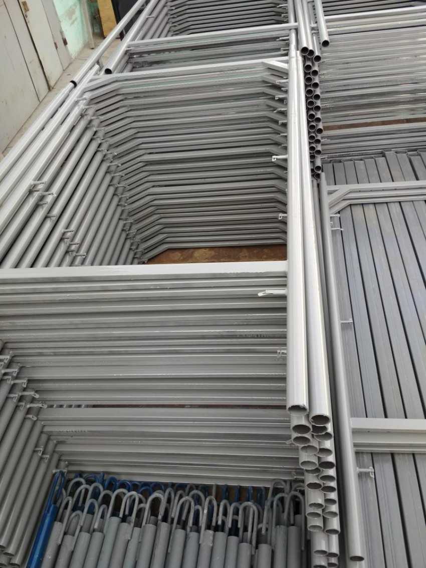Параллельные рамы устанавливаются в патрубки гантелей и образуют секцию. Для обеспечения жесткости самой конструкции секции соединяются между собой стяжками, которые крепятся на замках гантелей. Нижние секции устанавливаются на два основания, которые соединены между собой объемной диагональю.