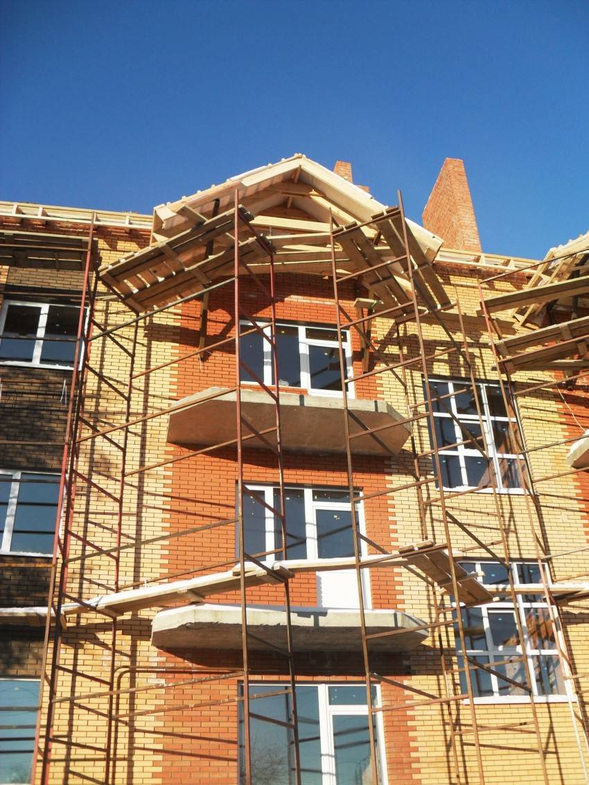Рост человека меньше высоты дома, поэтому выполнить кладку стен или отделку фасада без лесов или подмостей невозможно. Эти конструкции позволяют безопасно вести работы на высоте и дают возможность всегда иметь под рукой запас расходных материалов.