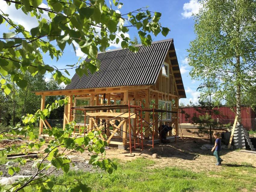 Если в ваши планы входит строительство нескольких жилых зданий и хозпостроек, то лучше сделать самодельные леса из профильного металла. Если же высотные работы будут вестись только один раз и на одном объекте, то выгоднее собрать конструкцию из брусьев и досок.