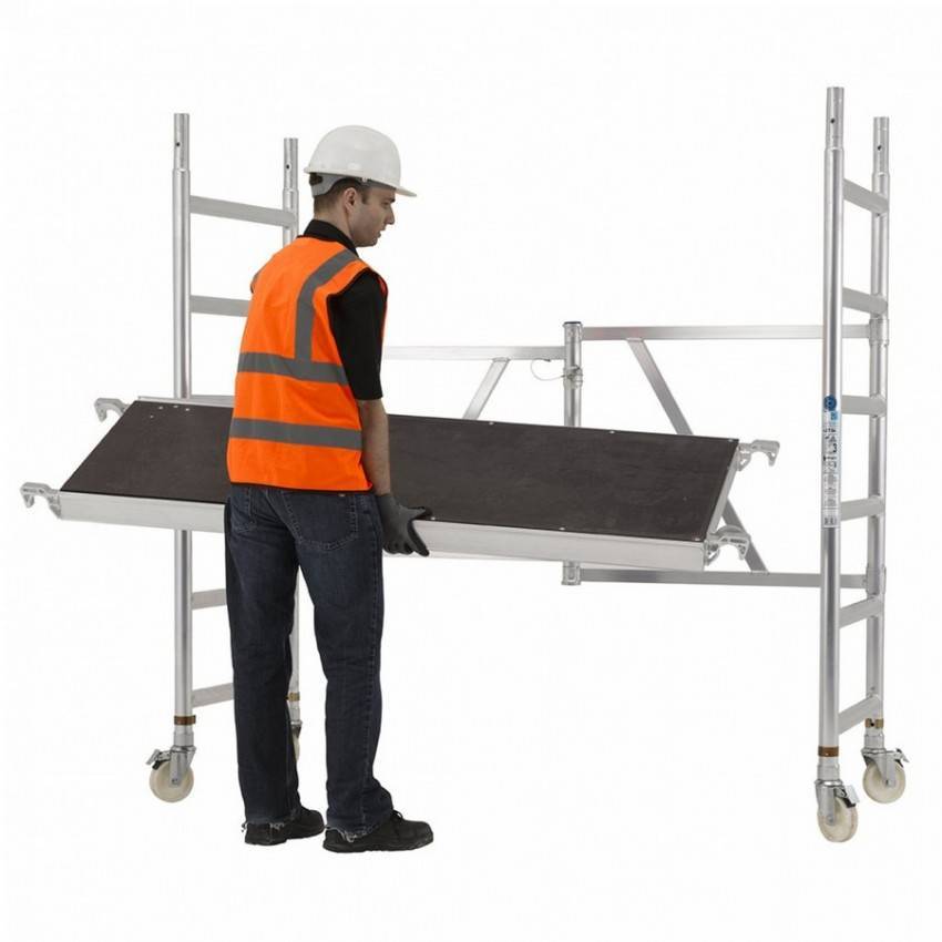 Вышка должна устанавливаться строго вертикально при помощи винтовых опор. Настил вышки должен иметь ровную поверхность.