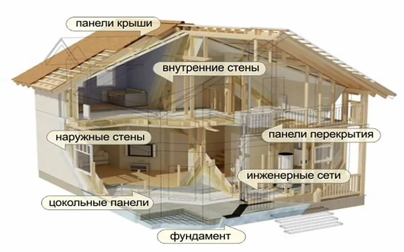 Дома по немецкой технологии при уже готовом фундаменте собираются из SIP панелей в течение двух суток. Отделка дома происходит только внутри, обычно это поклейка обоев, оформления же с наружной стороны не требуется.