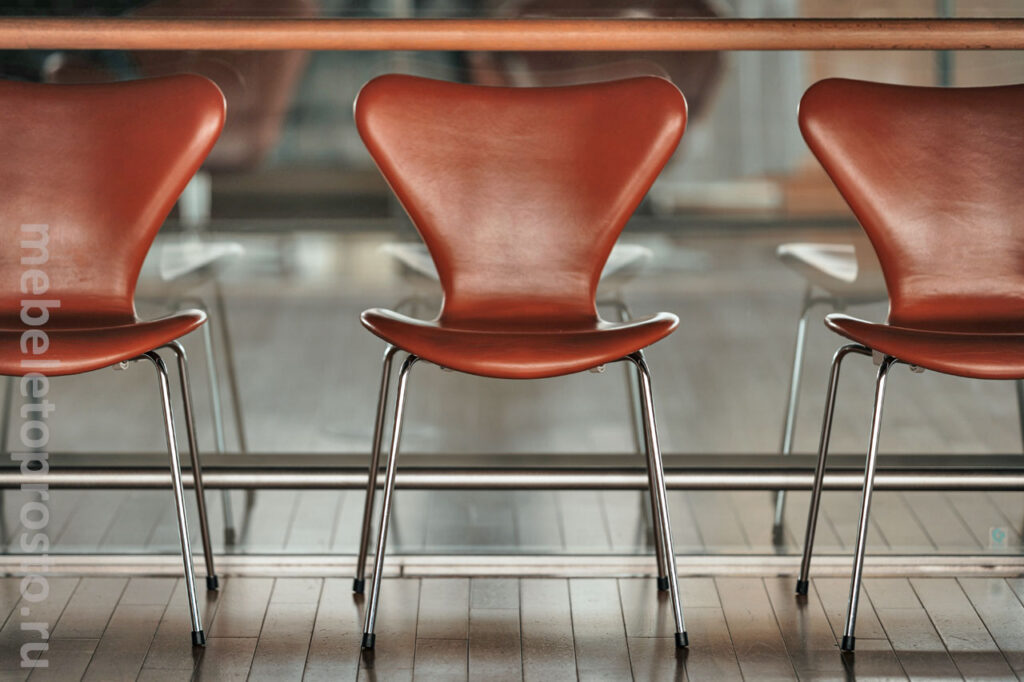 Компания Fritz Hansen, занимающаяся дистрибуцией этой модели, в данный момент предлагает целую линейку продукции под маркой Series 7. В первую очередь, конечно, это стулья. Их сиденья по-прежнему изготавливают из тонкой формованной фанеры, образующей изящные, но очень прочные посадочные места.