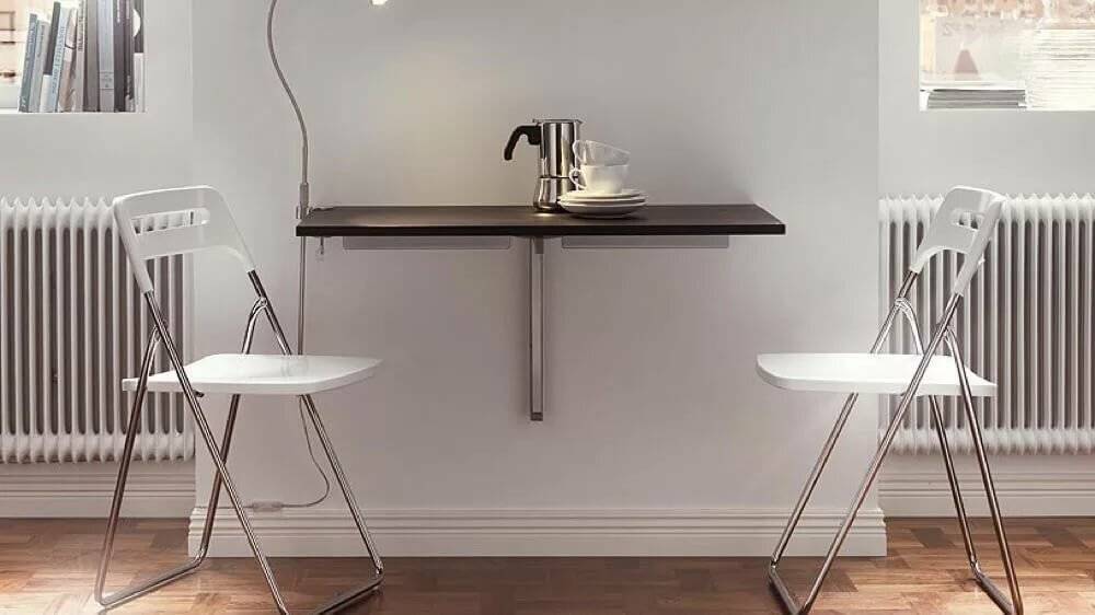 Если у вас есть кухня, открытая для гостиной или изящная мини-комната, вопрос о маленьком столике должен быть стилистически согласован с другими зонами. В дополнение к приглушенным цветам, стоит рассмотреть некоторые вариации. Например, стройный и маленький кухонный столик, который слегка приподнимается до высоты барных стульев. Расположенный на краю стены, очерчивающий обычную границу кухни и гостиной, он оптически и функционально закроет организацию пространства в квартире. Кроме того, такой вариант отлично подойдет в качестве замены столешницы или дополнительного рабочего пространства на кухне. Вы можете обогатить небольшой стол колесами с блокаторами (для работы на кухне). Тогда мобильность маленькой мебели позволит обустроить оба интерьера — как кухни, так и гостиной, приобретая интересный вид.