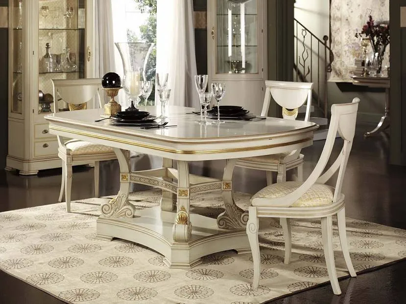 - В классическом интерьере столовой уместными будут богато украшенные деревянные образцы.