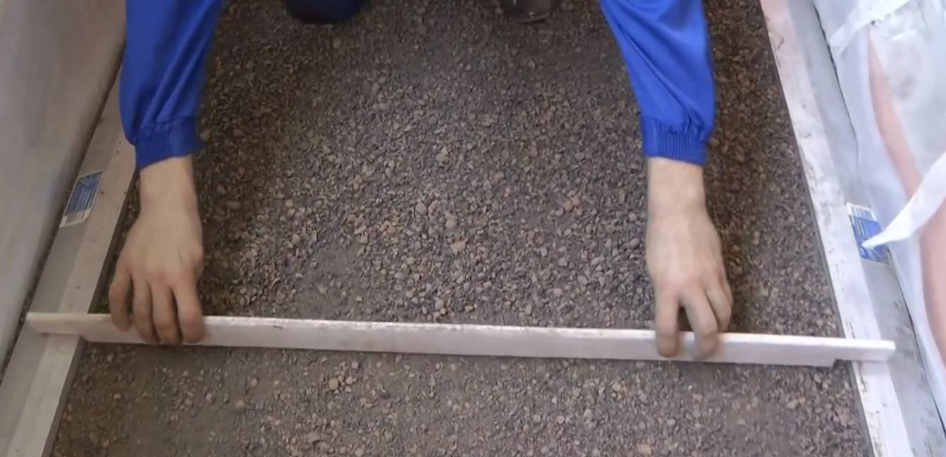 - Выравнивание слоя засыпки невозможно без установки маяков.