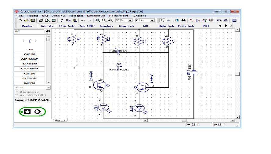 Пример показан на более простой схеме. Скачать учебник для работы в Dip Trace можно на сайте Full-Chip.net. В нем последовательно описывается каждая операция для печати микросхем.