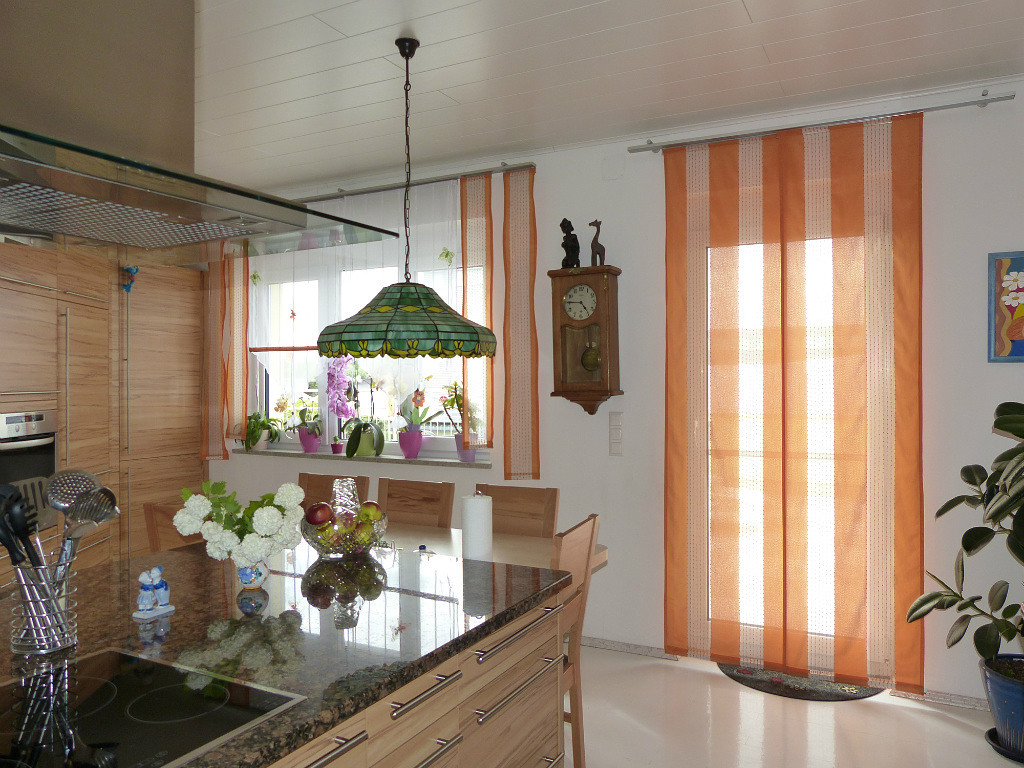 Лучше всего наши глаза воспринимают «теплый» белый свет, с чуть желтоватым оттенком. Примерно такой испускает солнце. При выборе ламп, надо смотреть, свет какой температуры испускают лампы (указано на упаковке). Для обеденной зоны нужен именно желтоватый, а для рабочей больше подходит нейтральный. Он максимально точно передает цвета. «Голубой» лучше не использовать, он создает слишком «стерильную» атмосферу.