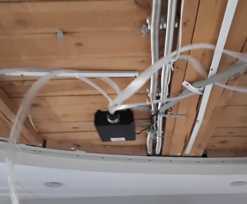 при наличии всей проводки за натяжным потолком, не допускайте никаких