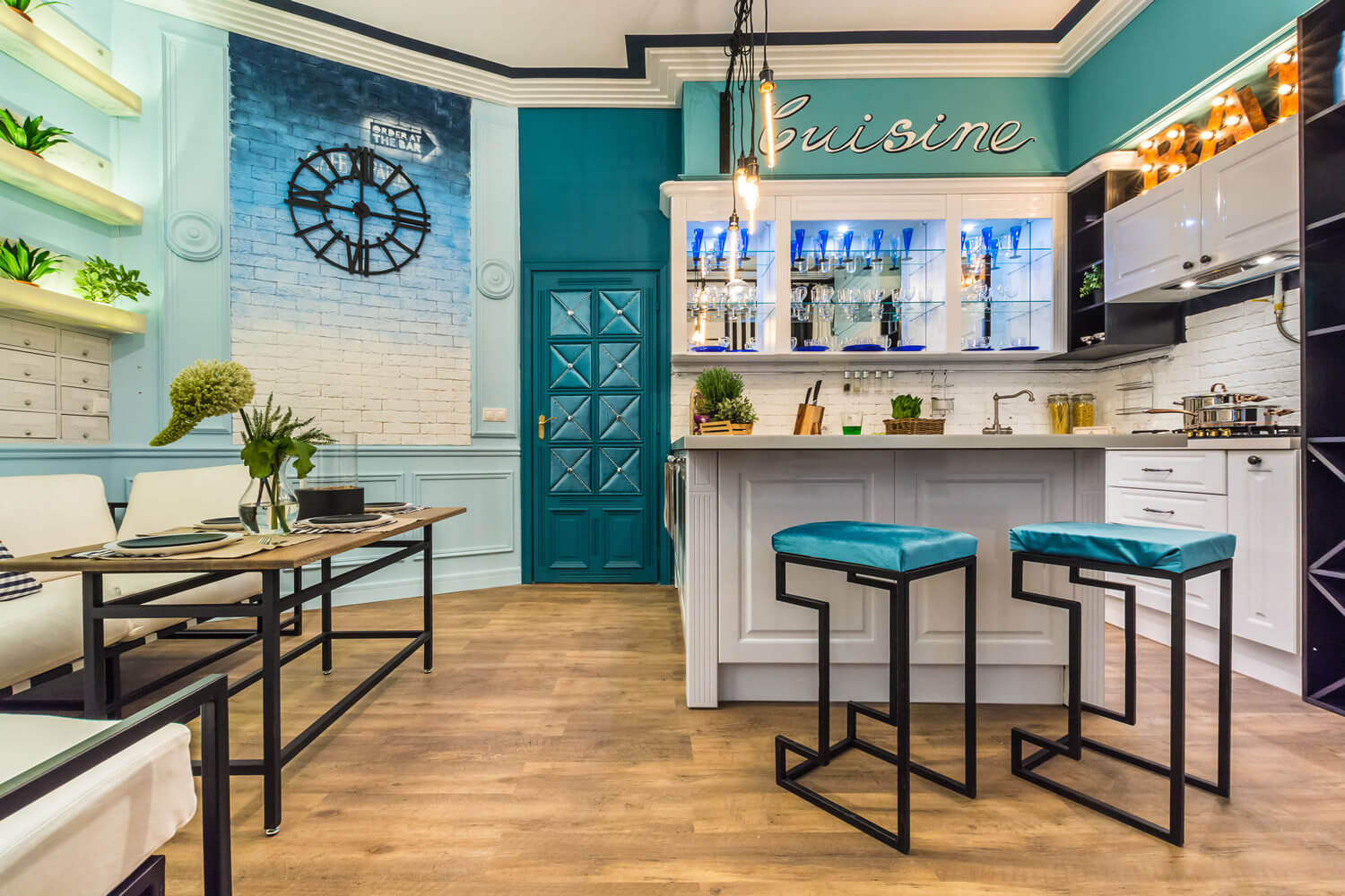 Любимый атрибут для кухни-студии и просто очень маленькой кухни — это барные табуреты.