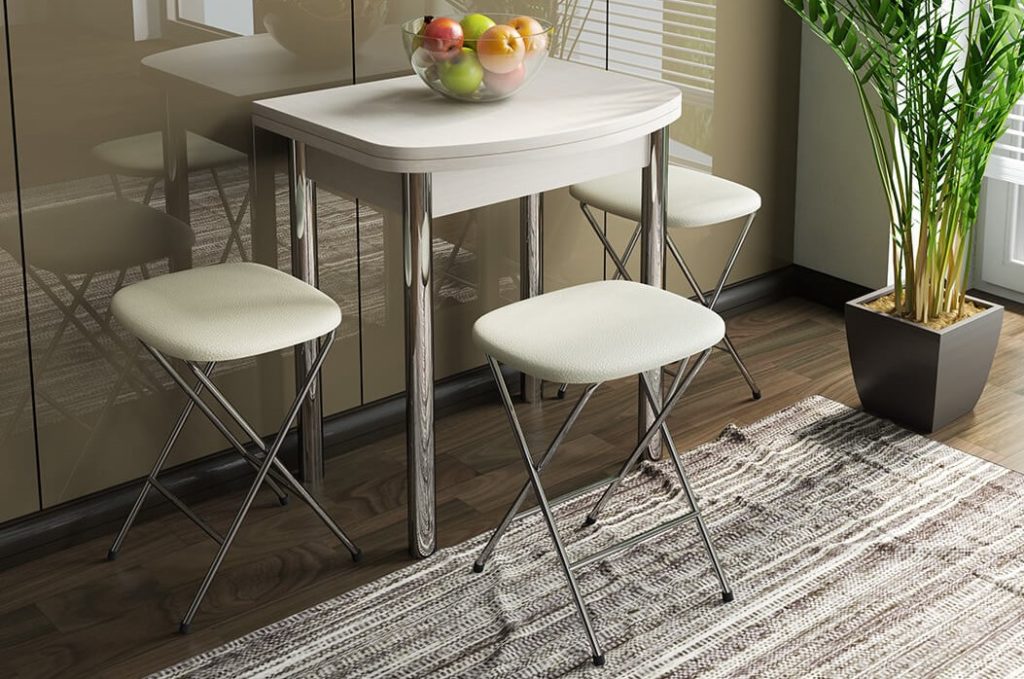 - откидные стулья и такой же откидной стол – вариант, если места совсем мало.