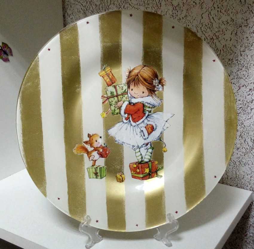 Теперь можно приступать к нанесению рисунка. Обычно для декупажа тарелок используются салфетки с понравившимися рисунками, выбранные на свой вкус в любом магазине.
