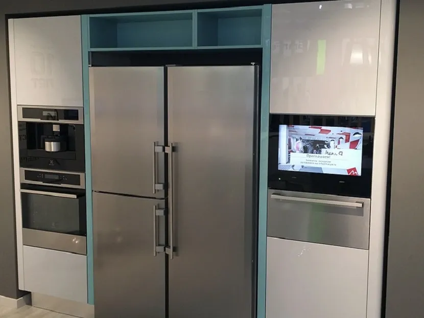 Для ультрасовременного дизайна интерьера производителями разработаны высокотехнологичные виды техники со встроенным экраном. Сюда относится, например, вытяжка с телевизором, которая, помимо основной функции очистки воздуха, отличается наличием встроенного экрана. Однако в этом случае нужно быть готовым к значительным тратам. В эту же группу можно отнести и современные холодильники с интегрированными ЖК-мониторами. Как правило, это большие модели Side-by-Side со встроенным 8- или 10-дюймовым телевизором, которого вполне достаточно для фонового использования.