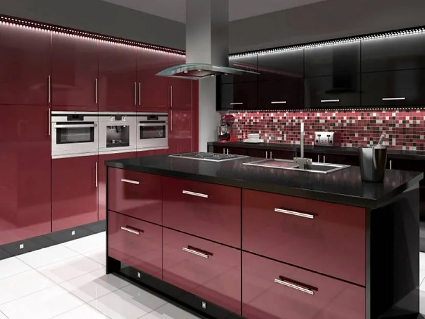 Дело в том, что избыток красного может удешевить интерьер. Так что эти два цвета нужно либо уравновесить, либо сделать небольшие акценты в красном цвете, а основной гарнитур оставить черным. Последний вариант предпочтительнее.