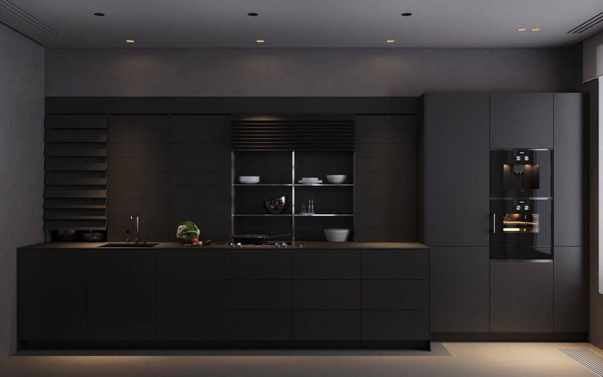В дизайне кухни с темной мебелью помимо практичности матовых