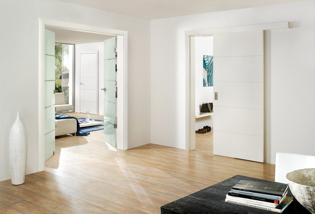 По конструкторским решениям двери белого цвета выпускаются распашными, раздвижными, одно- и двустворчатыми.