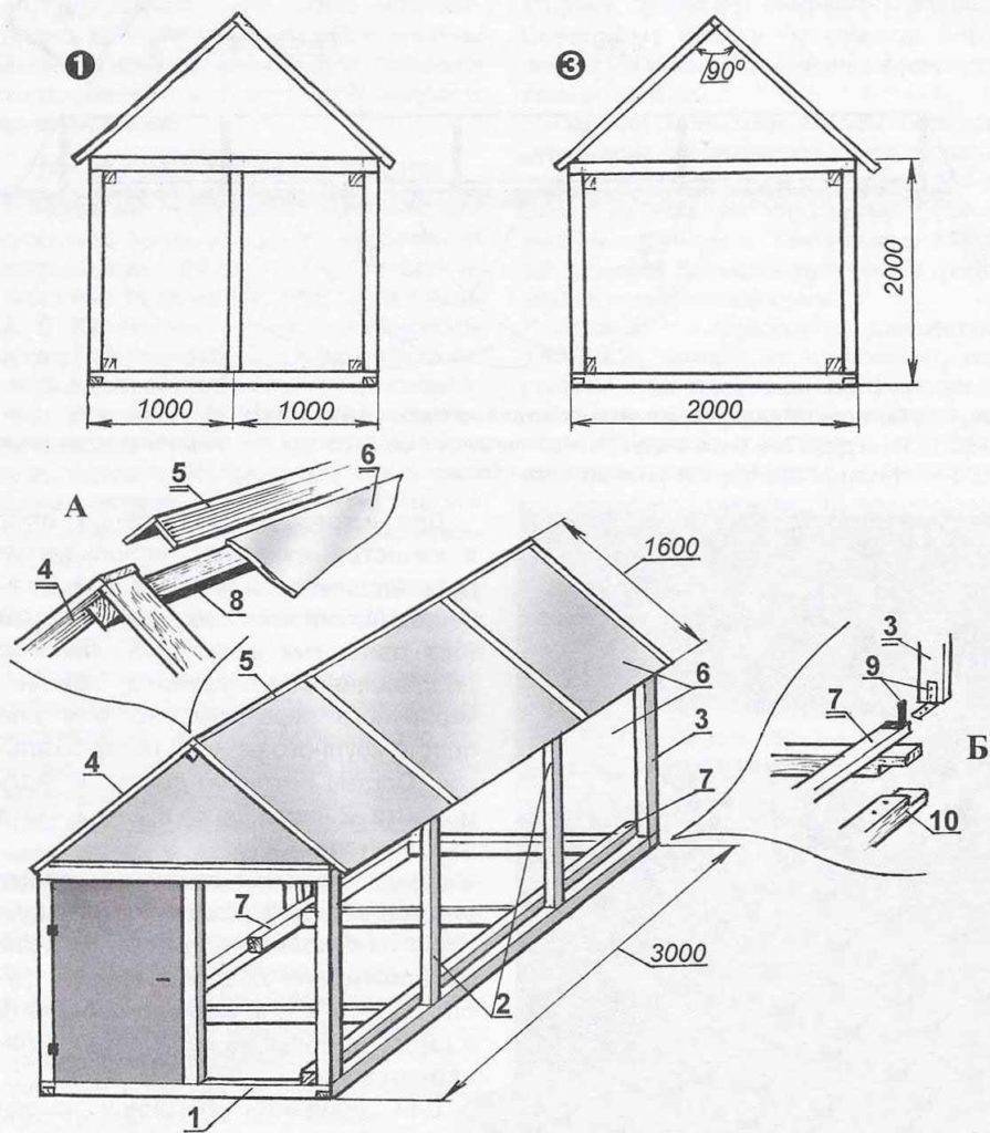 Без замеров и схемы будущего строения едва ли обойдётся тот, кто хочет построить для своих овощей хороший и прочный дом. Особенно пригодятся чертежи, если вы не смогли найти рамы одинакового размера. В процессе расчётов стоит учесть: