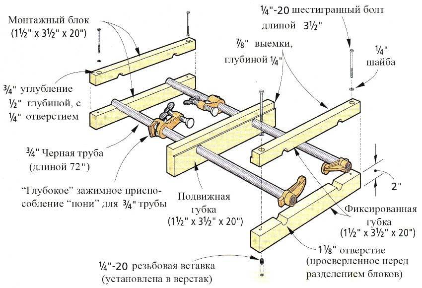 Первое, что следует учитывать при изготовлении столярных тисков, – это то, что губки должны быть изготовлены из древесины мягких пород, что позволит избежать повреждения мягких деталей.