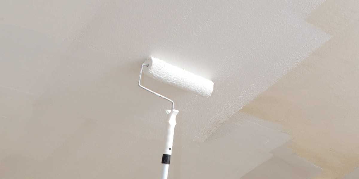 - Если потолок ранее был отделан, проходятся по нему наждачной бумагой, чтобы образовалась шероховатость.