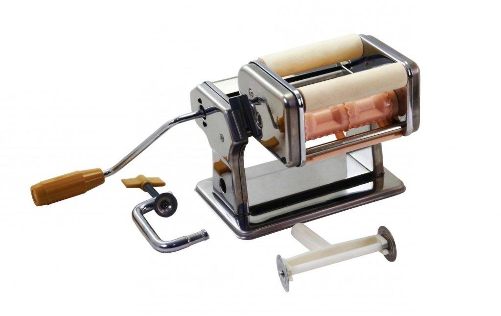Лапшерезка произведена в Италии. Отличается превосходной сборкой с высоким качеством всех элементов. Комплект поставки состоит из стальной машины, двух насадок, электрического привода и детальной инструкции. Кроме того, производитель предоставил возможность использовать машинку без электрического привода, который заменяет ручка и приспособление для крепления к поверхности стола. Она устойчива и не требует технического обслуживания. По желанию можно приобрести дополнительные насадки.