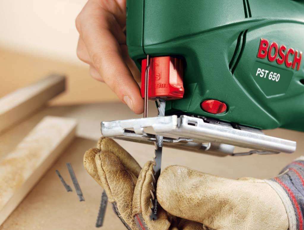 В конструкции электролобзика предусмотрен удобный держатель для пилок