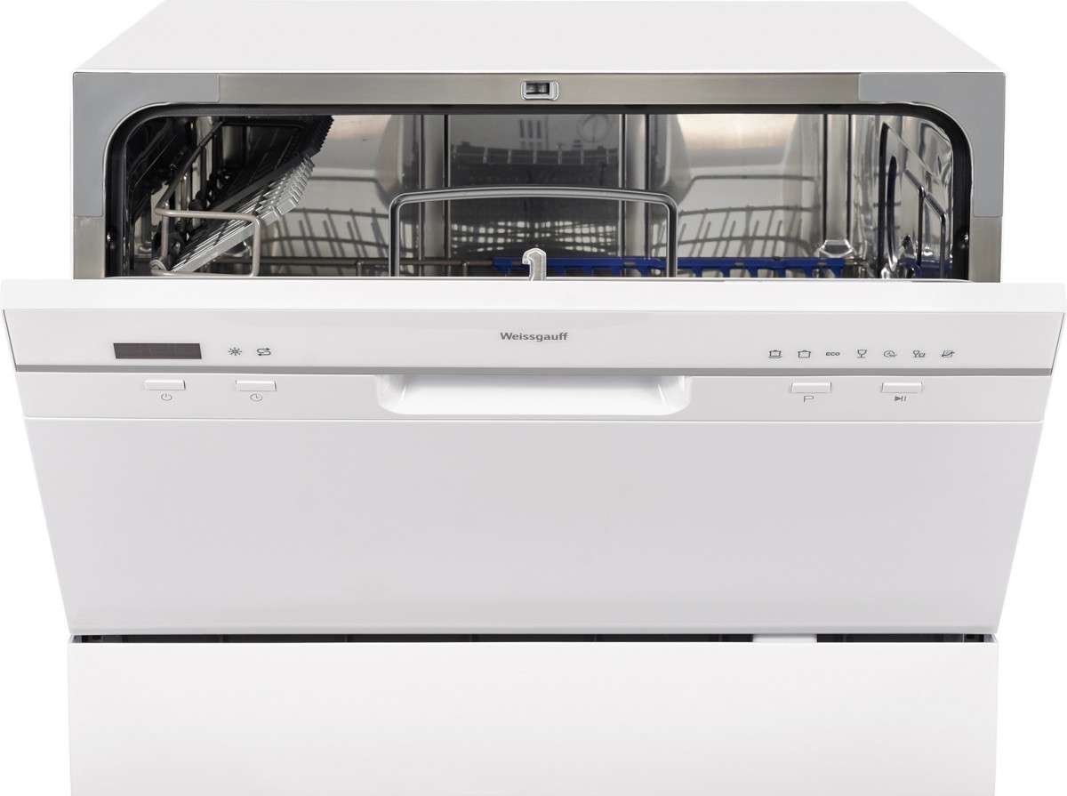 Посудомоечная машина Weissgauff TDW 4017 D доступна в белом цвете. Он настолько компактен, что его можно разместить практически в любой части кухни. Несмотря на свои размеры, TDW 4017 D вмещает до 6 комплектов посуды. Общее количество программ, используемых на посудомоечной машине, составляет 7 штук. Доступна функция отсрочки работы устройства, максимальное время, на которое можно отложить стирку, составляет 24 часа. Максимальная потребляемая мощность составляет 1380 Вт, а потребление может составлять 900 Вт * ч за цикл. Управление Weissgauff TDW 4017 D полностью электронное, это будет легко понять человеку, не знакомому с этим классом устройств. Дисплей чистый, и программы отображаются на экране.