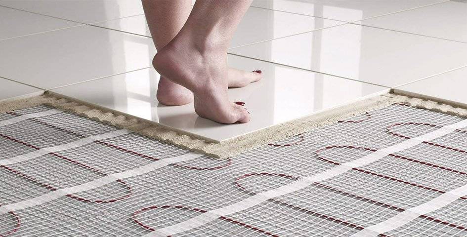 Этот вид нагревательных элементов в виде пластиковой или силиконовой сетки с кабельными секциями не требует укладки бетонной стяжки, так как его в зависимости от мощности можно укладывать под утолченный слой клея и даже просто в окончательное напольное покрытие. Все системы такого типа снабжены терморегуляторами, что позволяет использовать систему обогрева только тогда, когда она действительно нужна.